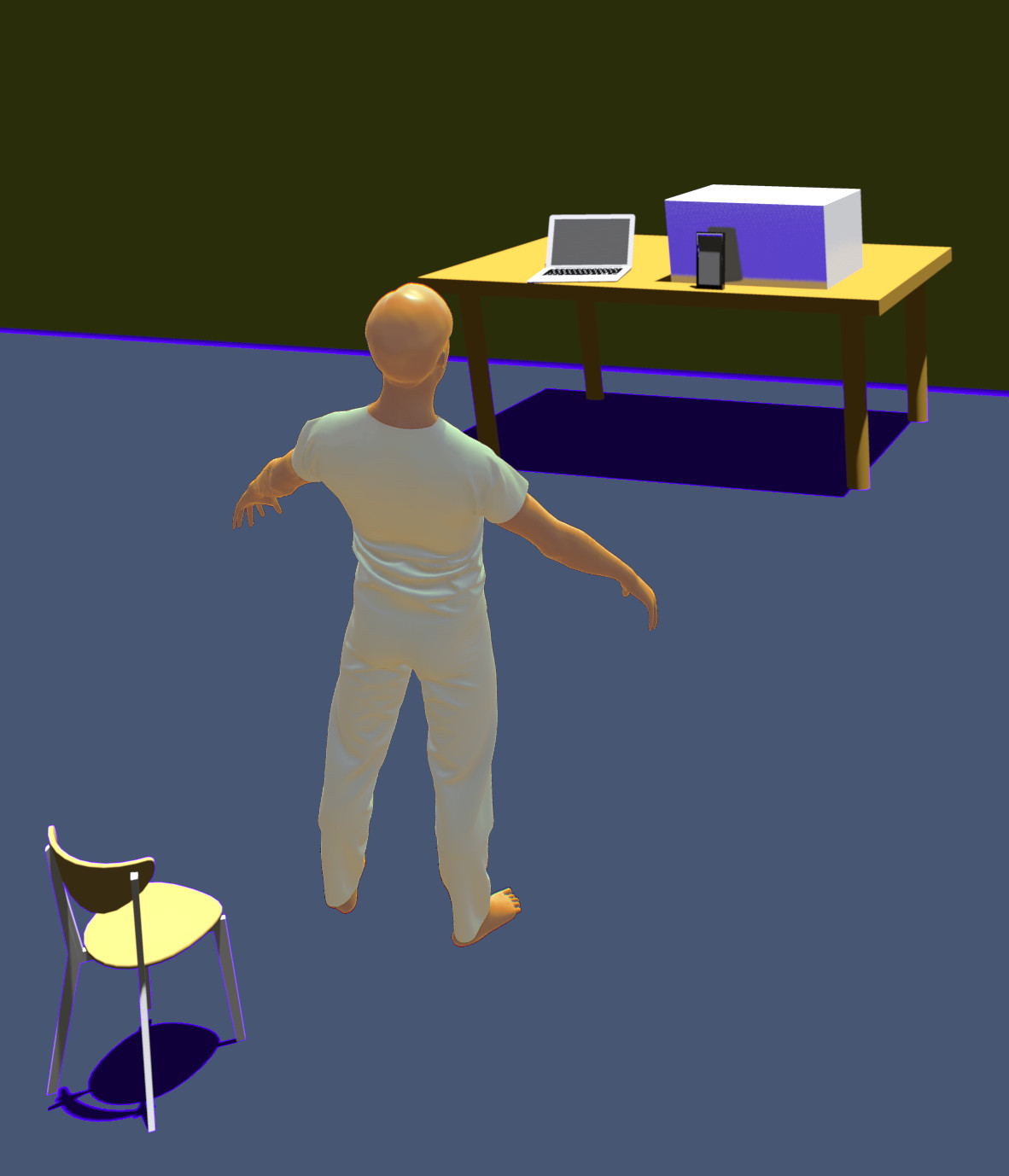 Celular ou câmera para a filmagem. Posicione-se de modo que seja possível captar seus movimentos em pé e de braços abertos conforme a imagem.